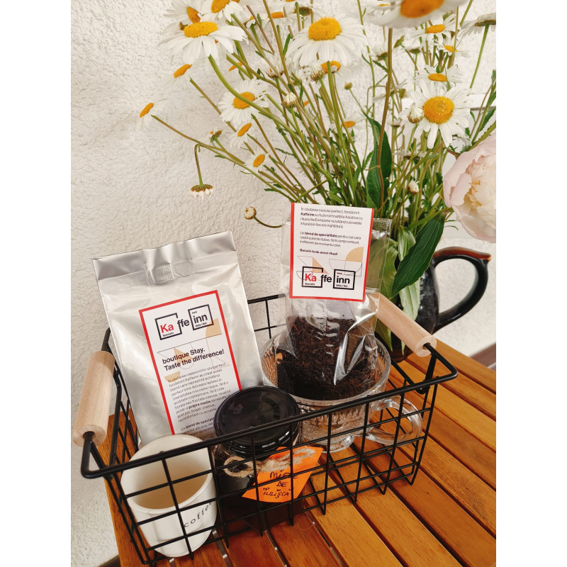 Am pus in acest cos tot ce credem ca spune cel mai frumos „bun venit” unui oaspete care vrea sa simta tara nu doar sa o vada: gusturi, miresme si retete pastrate de la bunici. Welcome to Romania nu e doar un cos cadou. E o invitatie la descoperirea locurilor, oamenilor si povestilor pe care le purtam cu noi in fiecare borcan, sticla sau cutie.