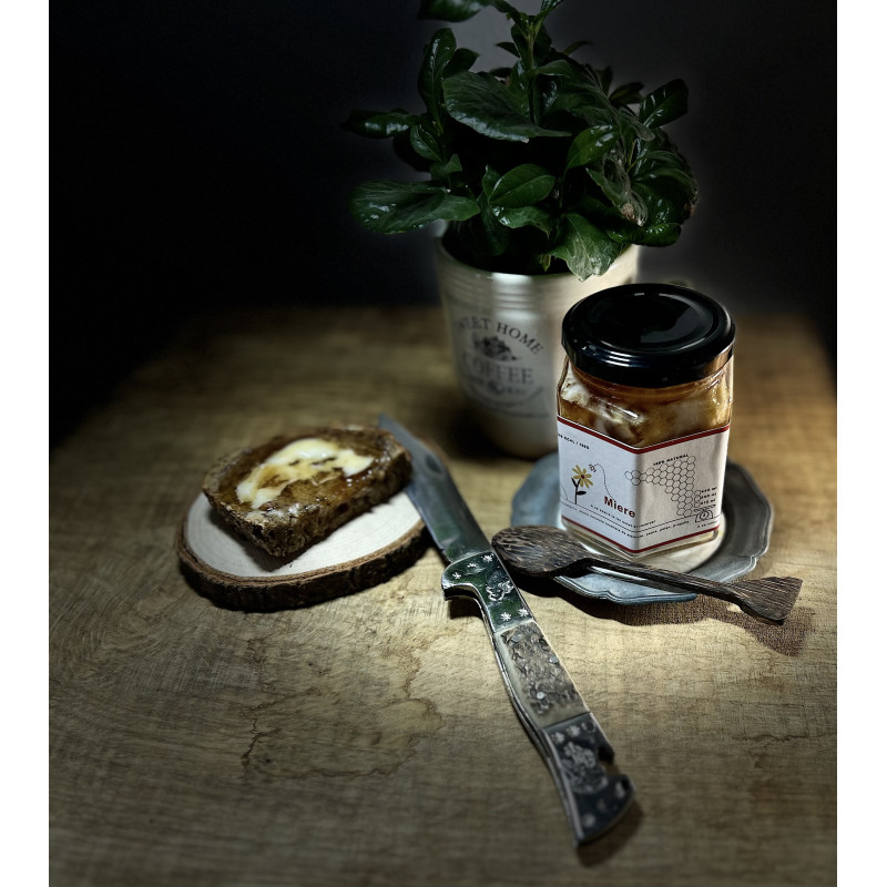 O selectie naturala de 5 tipuri de miere pura (iulisca, rapita, salcam, tei si poliflora), polen, ceara si propolis — o adevarată comoara nutritiva. Mierea contribuie la întarirea imunitatii, la calmarea tusei si la reglarea digestiei, in timp ce propolisul are proprietati antibacteriene. Este un elixir natural de energie si vitalitate, ideal pentru consum zilnic sau ca indulcitor sanatos.
