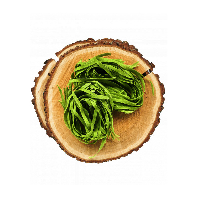 Busuiocul, planta aromatica cu proprietati antiinflamatoare si digestive, ofera acestor paste o aroma intensa si beneficii asupra sistemului nervos și imunitar. Combinatia de faina de grau dur si oua proaspete creeaza o textura fina, iar parfumul natural al busuiocului le transforma intr-un preparat reconfortant si plin de savoare.